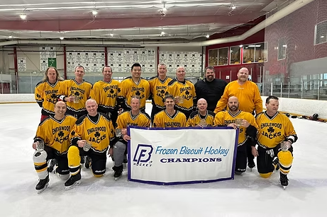 All 4 Championship series were nail-biters. The Platinum Division showcased some top 50+ talent in a back and forth scoring battle with the Yanks (returning Champs under a new name) in the lead going into the 2nd. But a strong 3-goal 2nd period for the Englewood Jacks Platinum (returning runner-up team) proved too much for the Yanks to overcome in the 3rd resulting in Englewood Jack being crowned the new Platinum Champs winning 4-2 (includes an empty net)