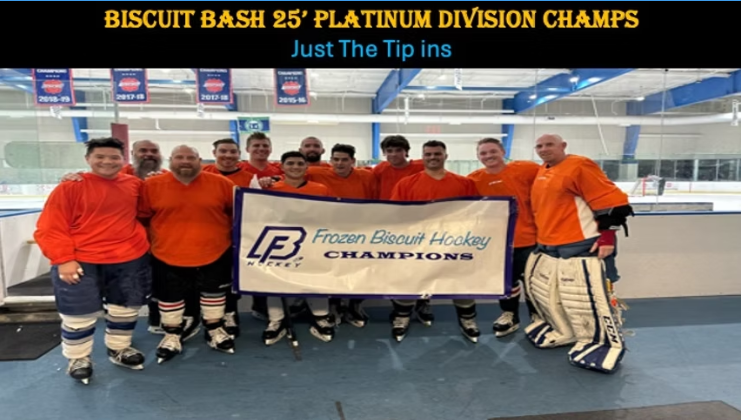 Platinum Division ~ This division featured top talent in fast paced battles. The championship was between the top 2 ranked teams in the tourney - Just The Tip Ins and Church HC. Just The Tip Ins had a 1 goal lead heading into the 2nd period and extended the lead to 4 to 1 with a strong 2nd period performance. Church HC staged a comeback in the 3rd but was unable to make up for the 3 goal deficit....resulting in Just The Tips Ins being crowned 'Platinum Champions'