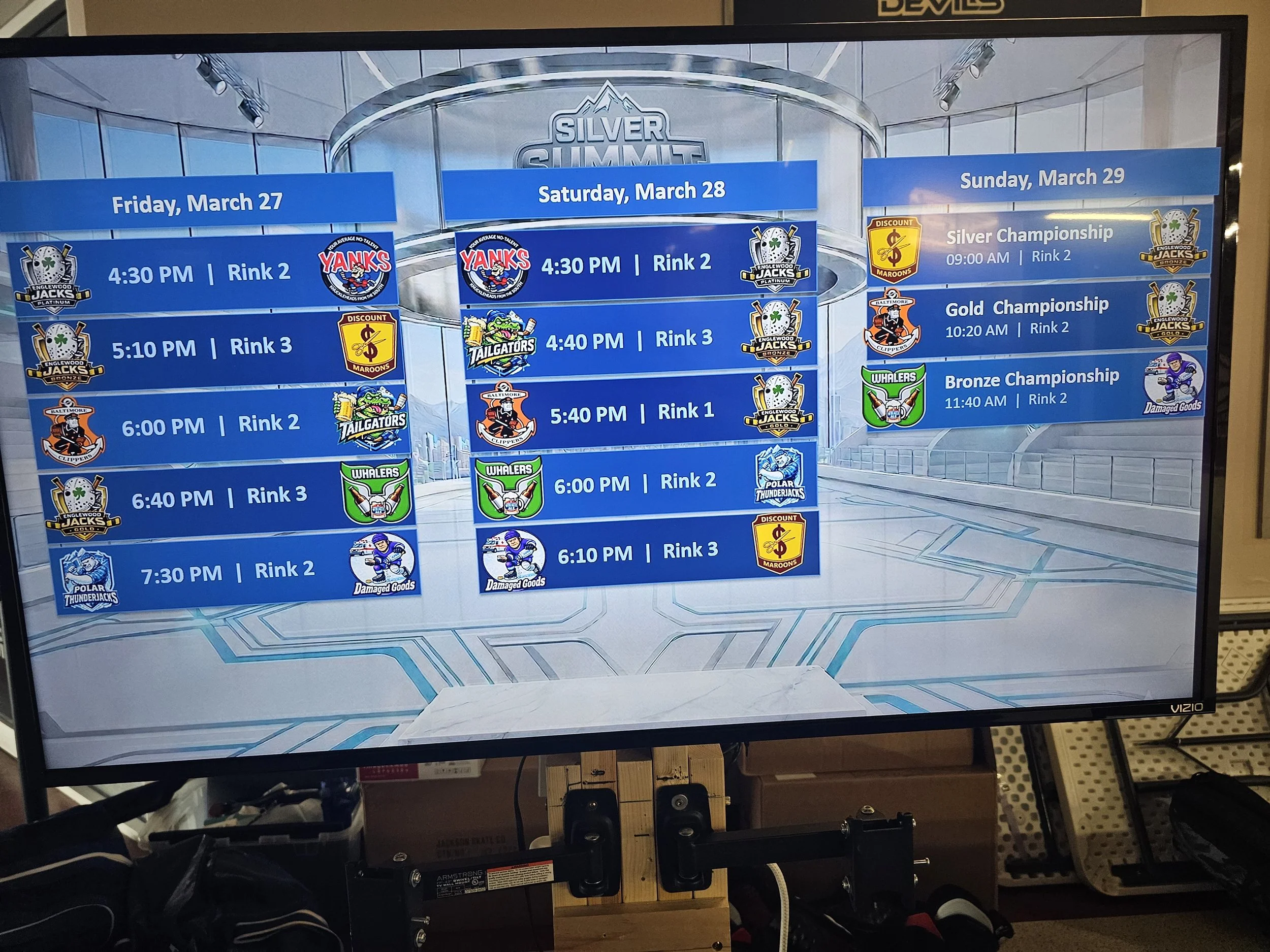 On March 27-29, ten teams converged at the Rockville Ice Arena to compete in the 2026 Senior Silver Summit in Rockville, Maryland. Teams were composed of players from VA, MD, NJ, PA, TX, CO, AZ, MN, NC, GA. 10 teams participated including: Yanks, Englewood Jacks Platinum, TailGators, Clippers, Whaler, Discount Maroons, Englewood Jacks Gold, Damaged Goods, Polar Thunderjacks, Englewoodjacks Silver.
